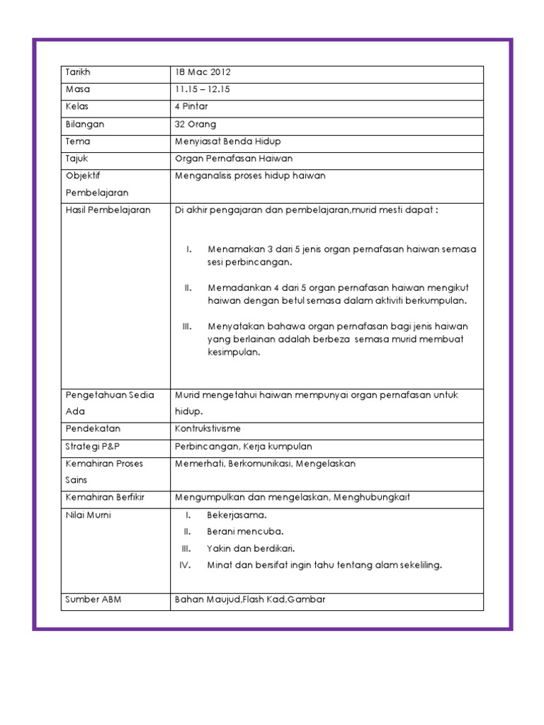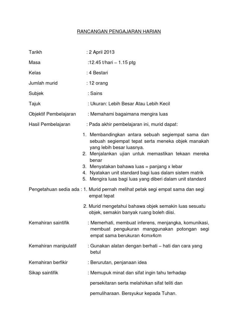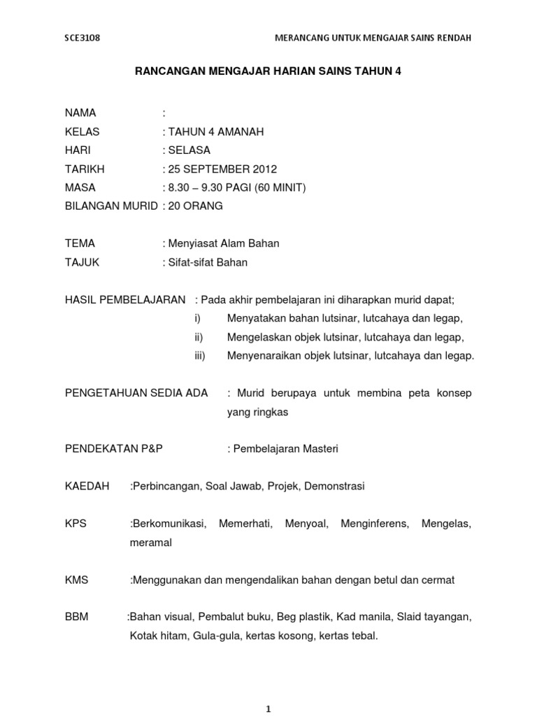 Rancangan Pengajaran Harian Rph Sains Tahun 4 Pdf